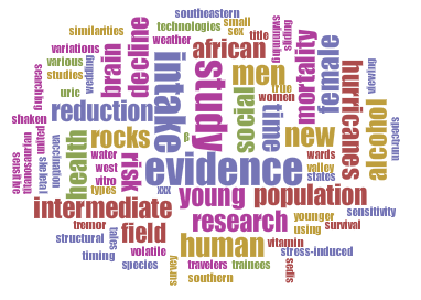 I won’t even attempt to answer these questions on a blog post… but in the meanwhile I wanted to share with you a cloud visualisation of the 100 article titles I made with Voyant Tools: