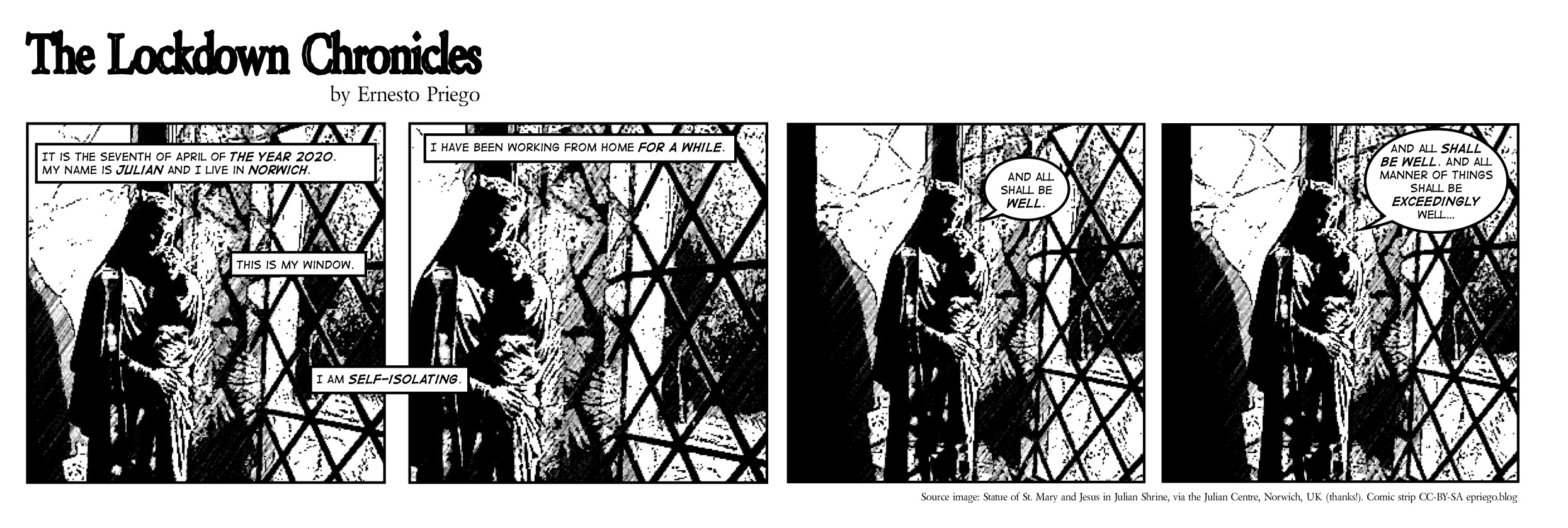 The Lockdown Chronicles is a series of periodical comic strips made at night (in candlelight!) adapting and reusing openly-licensed or public domain items from online digital collections. Publication and tweetage are scheduled in advance. Historical sources are adapted and updated for the current pandemic; please refer to each strip’s references on each post for further context. Catch up with the series at https://epriego.blog/tag/the-lockdown-chronicles/.