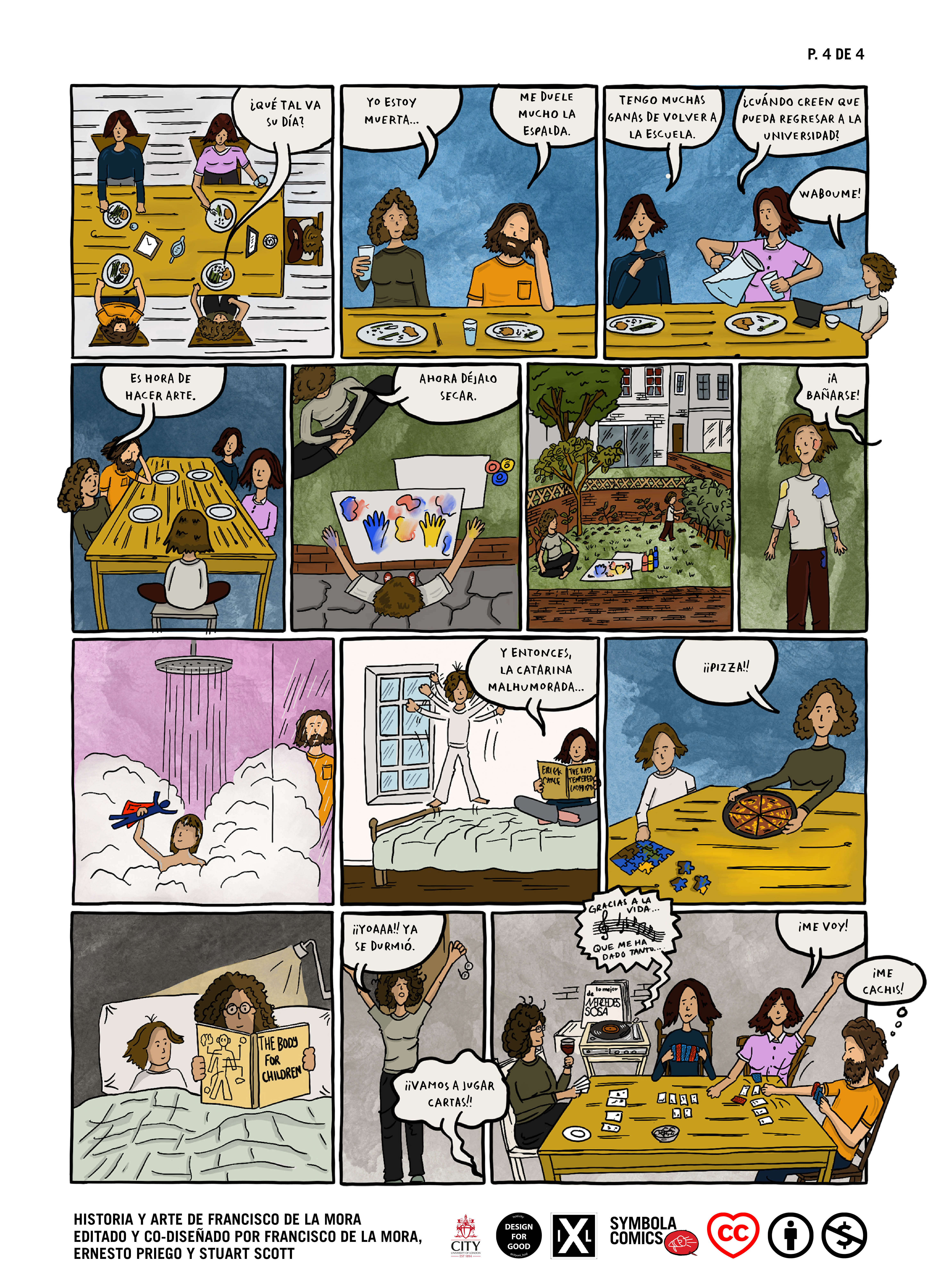 de la Mora, F., Priego, E. and Scott, S. (2021). Un día en cuarentena (un cómic en respuesta a COVID-19) City Interaction Lab / Symbola Comics, London. https://openaccess.city.ac.uk/id/eprint/26068/