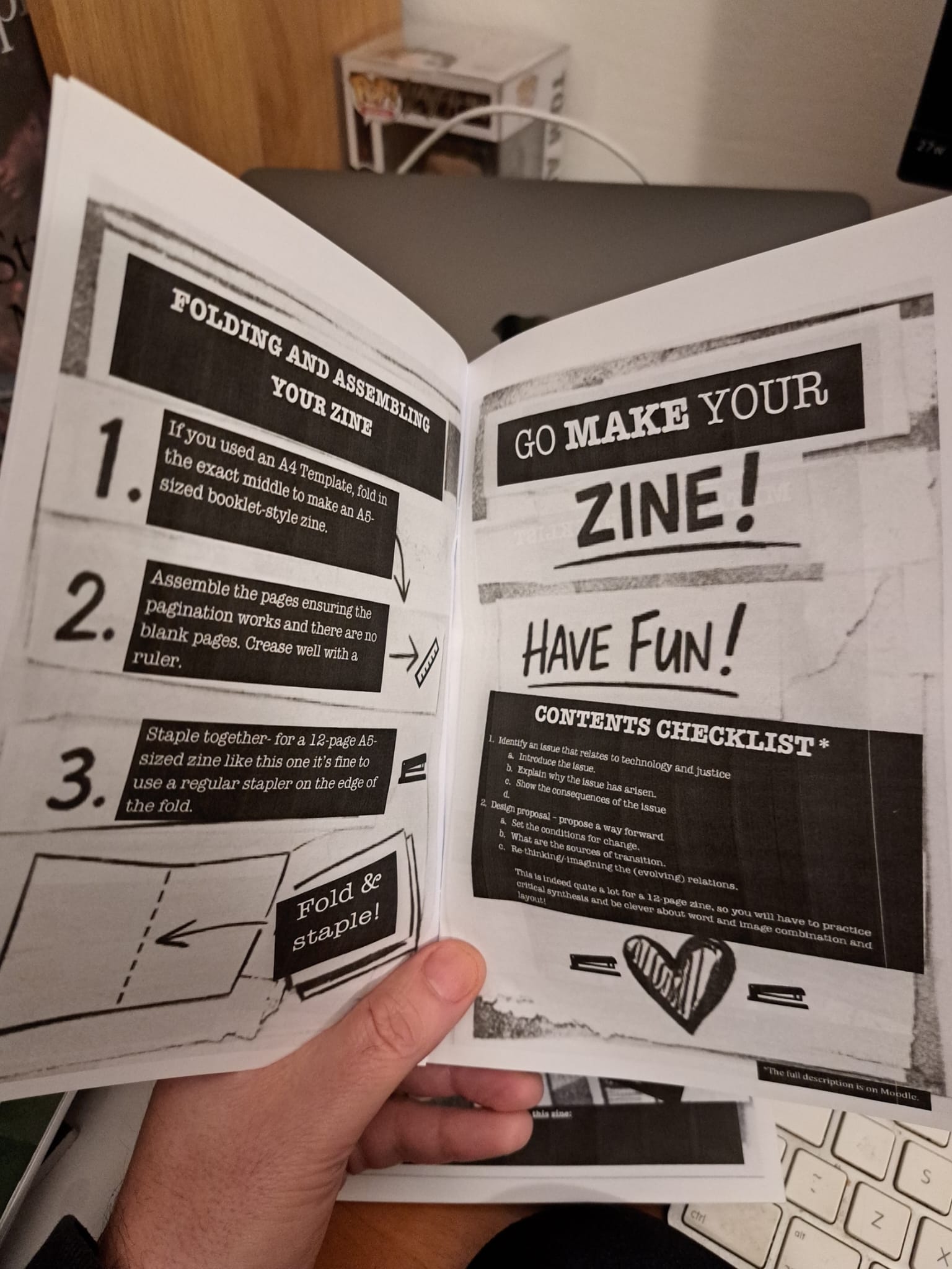 I‘ve always believed one must try to do the walk, not just the talk. Or as we used to say back in the prehistoric days, we need hacking, not just yacking. My module’s coursework requires creating a zine, so I made a quick how-to zine for my students.
